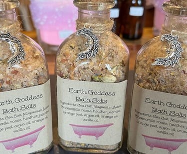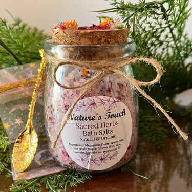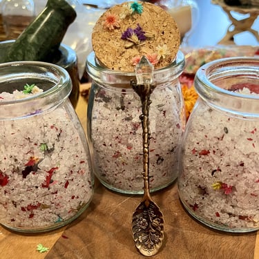 Bath salts infused with soothing herbs, flower petals, essential oils and botanicals ingredients are all natural and organic. Perfect for self-love bath rituals, relaxation, cleansing negative energy and restoring body, mind and spirit balance.